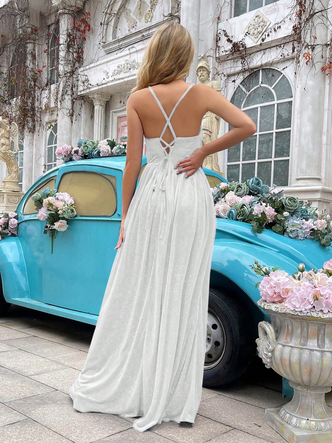 Bling Bridesmaid Gown Fashion Girls Formal Dress Women Long Gowns For Wedding, Formal Events, Wedding Guest, Dinner, Engagement Party Pleated High Slit Hem Sleeveless Dresses