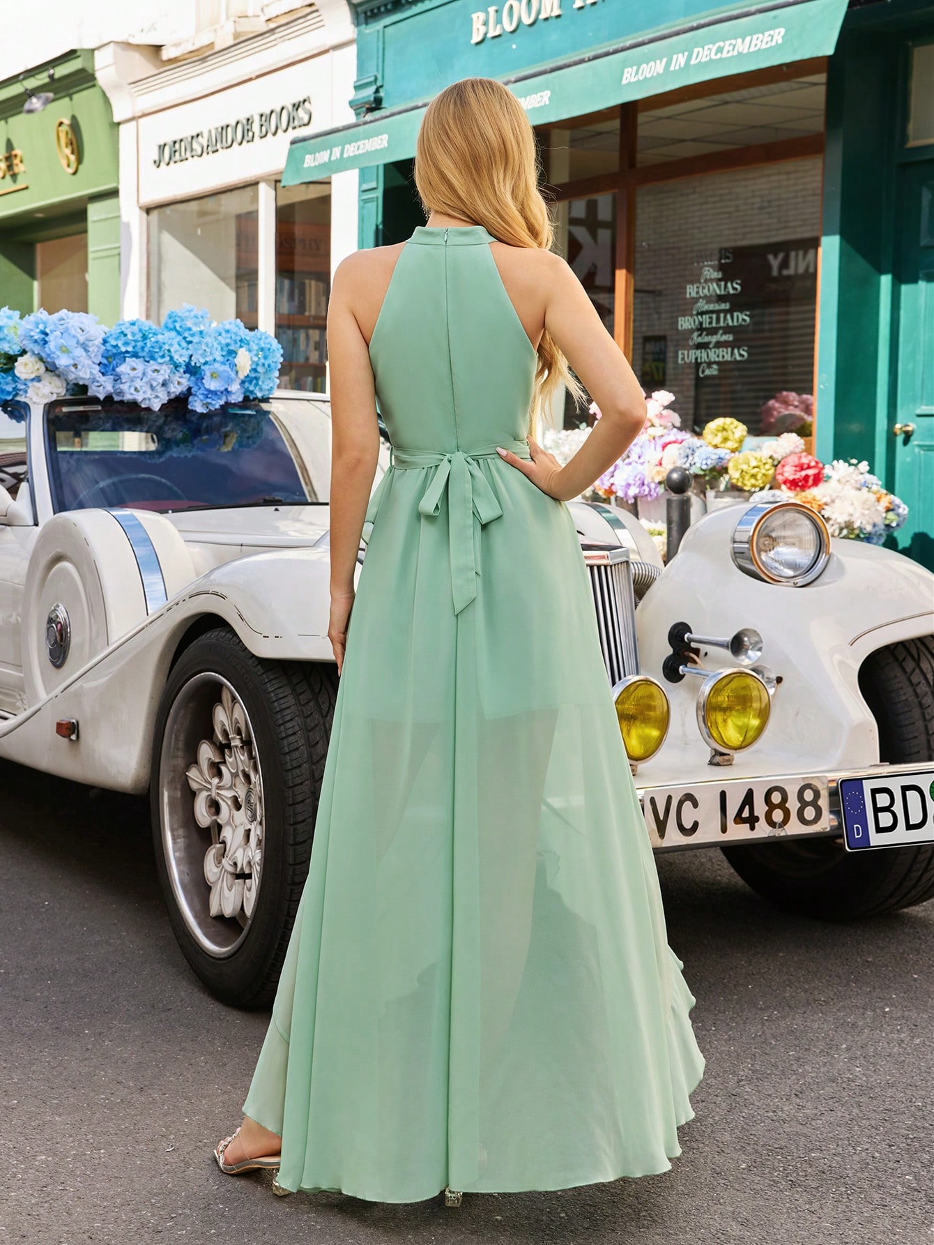 Chic Design Chiffon Bridesmaid Dress Multiple Wear Ways Wedding Guest Dress For Romantic Wedding, Valentine's Day, Vacation, Engagement Party Pure Color Women Sleeveless Gown Asymmetrical Neck V-Neck Halter Long Formal Dress