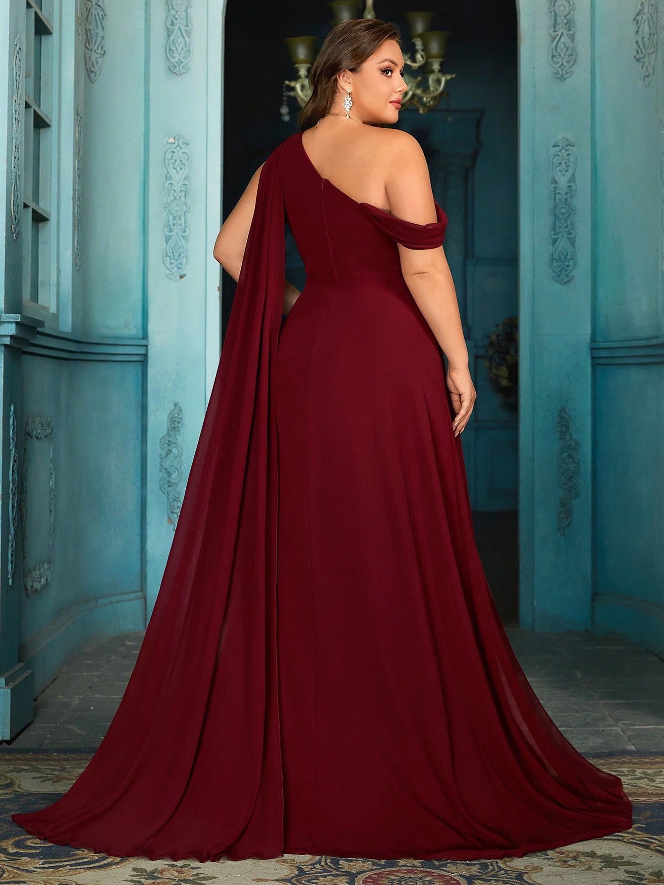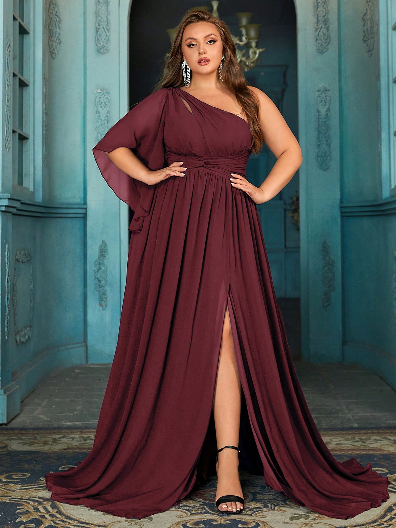 Daily Elegant Plus Size Bridesmaid Gown Women Formal Dress Formal Events Dresses For Wedding, Engagement Party, Weddings Dinner Solid Color High Slit One Shoulder Bridesmaid Gowns