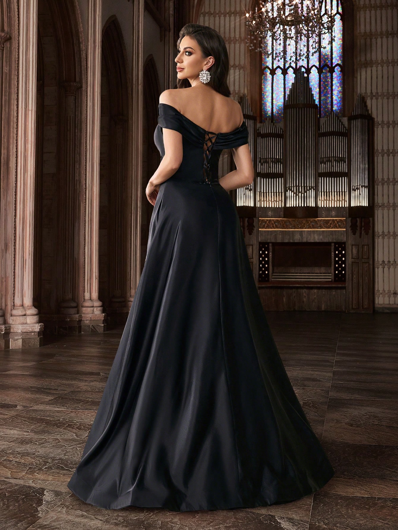 Shining Fashionable Sequins Women Formal Dress Upscale Striped Party Evening Gown For Graduation Prom, Birthday Party, Galas, Red Carpet, Dinner Party, Anniversary Celebration Solid Color High Slit Strapless Floor Length Dresses