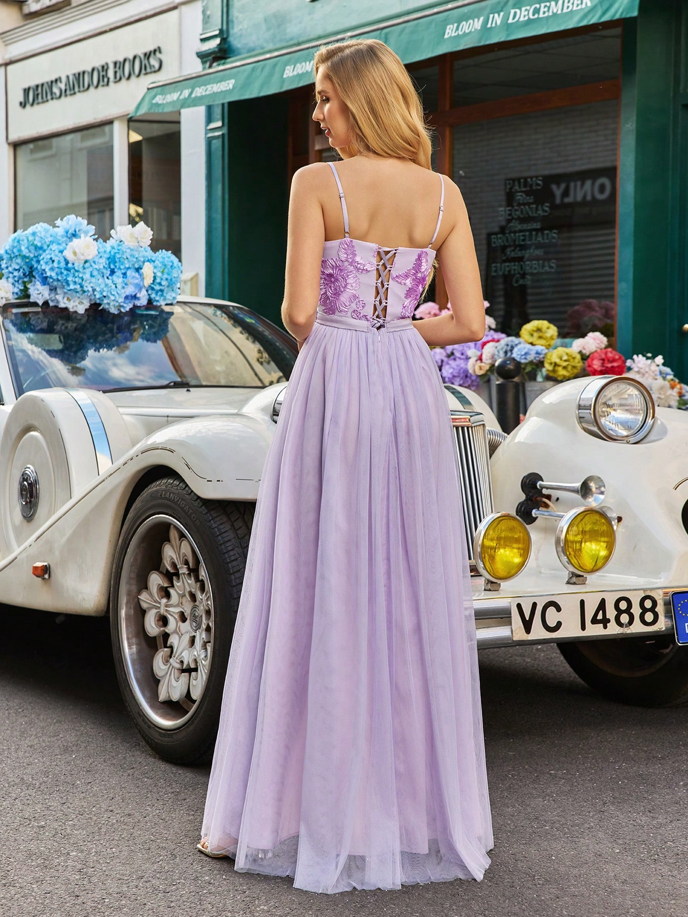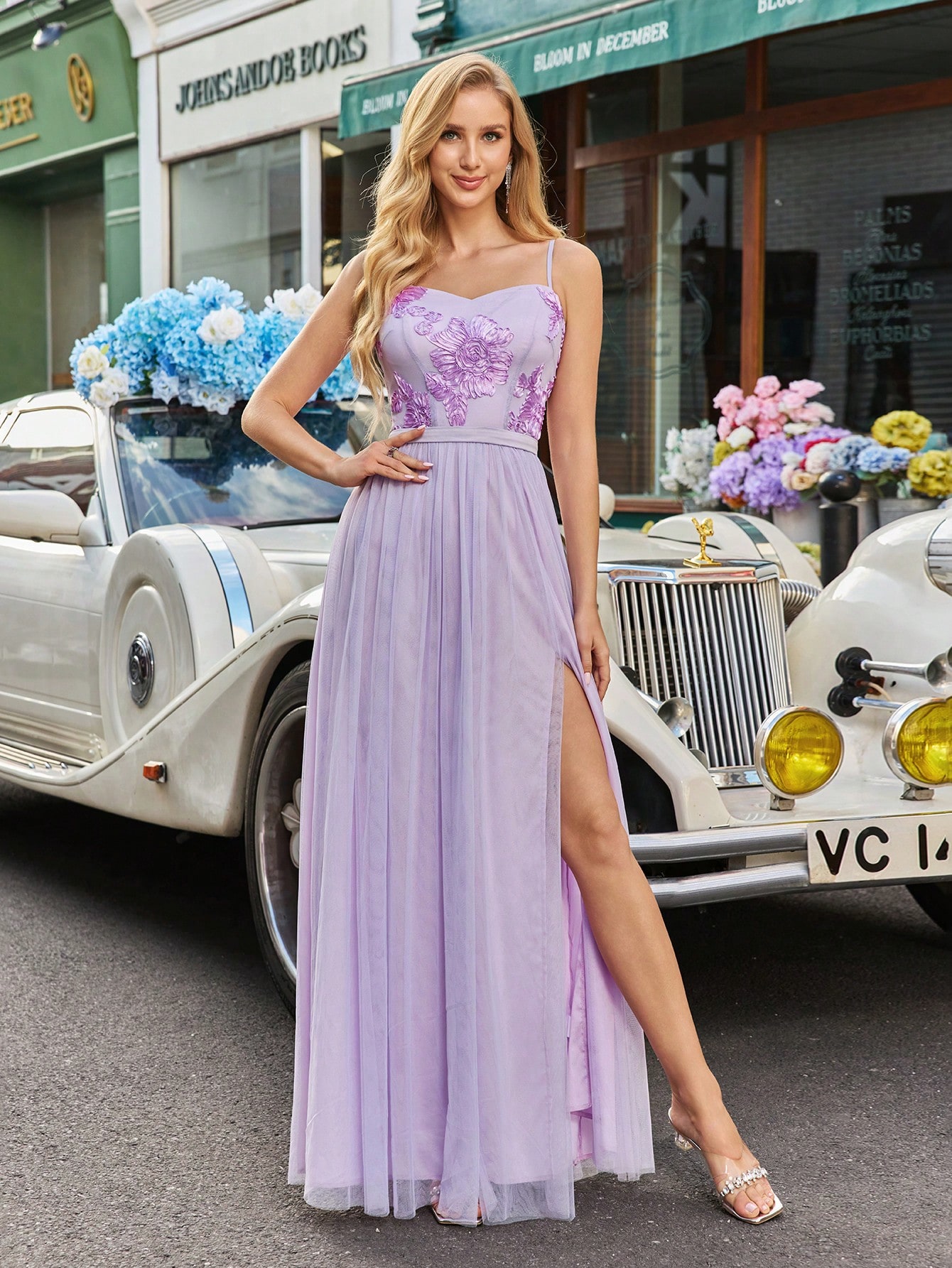 Dreamlike Spring Summer Wedding Guest Dress Floral Detail Bridesmaid Dress Mesh Patchwork Prom Dresses For Outdoor Wedding, Lawn Weddings, Birthday Party, Banquet Solid Color Women Sleeveless High Slit Formal Dress Maxi Gown