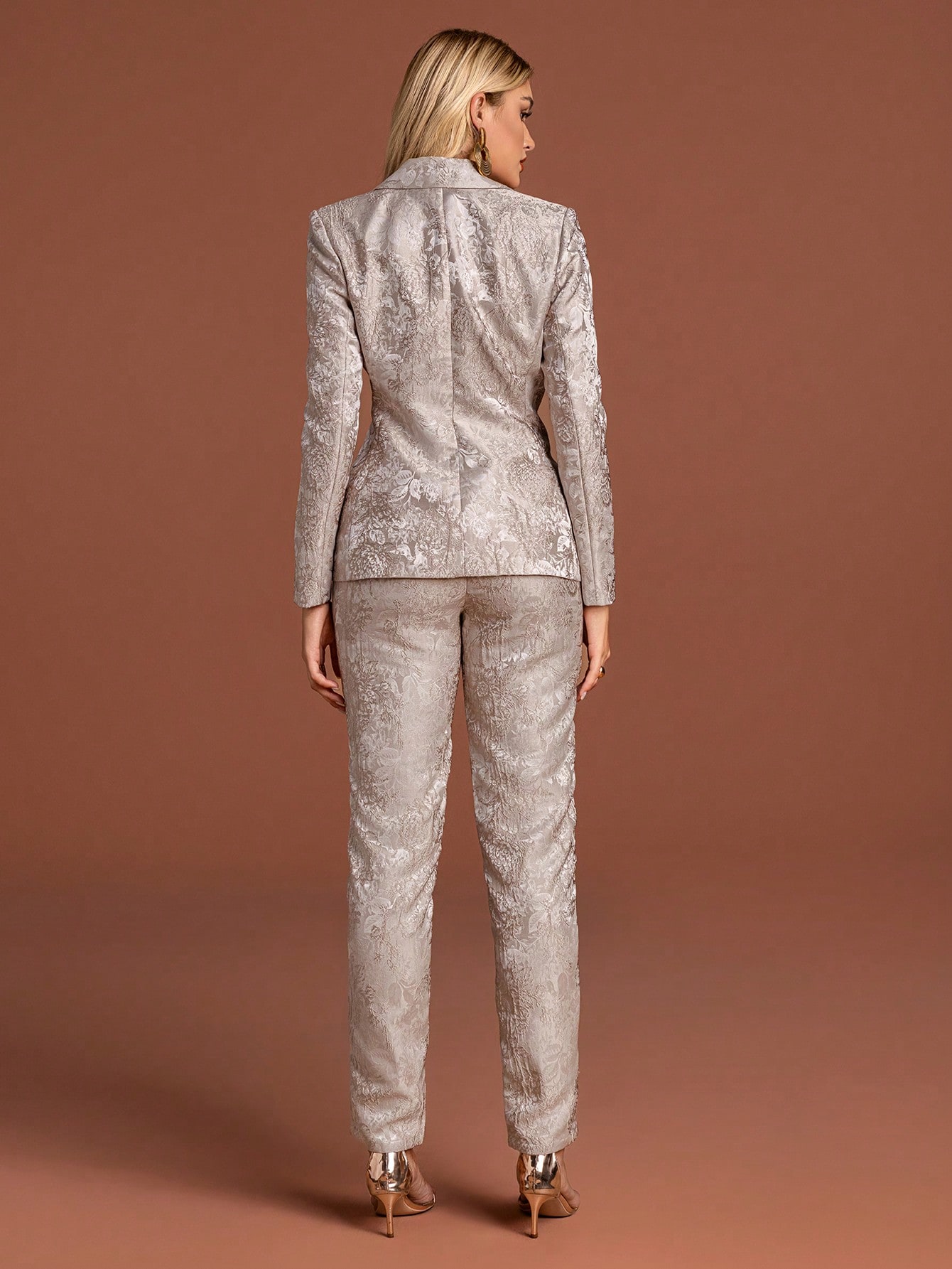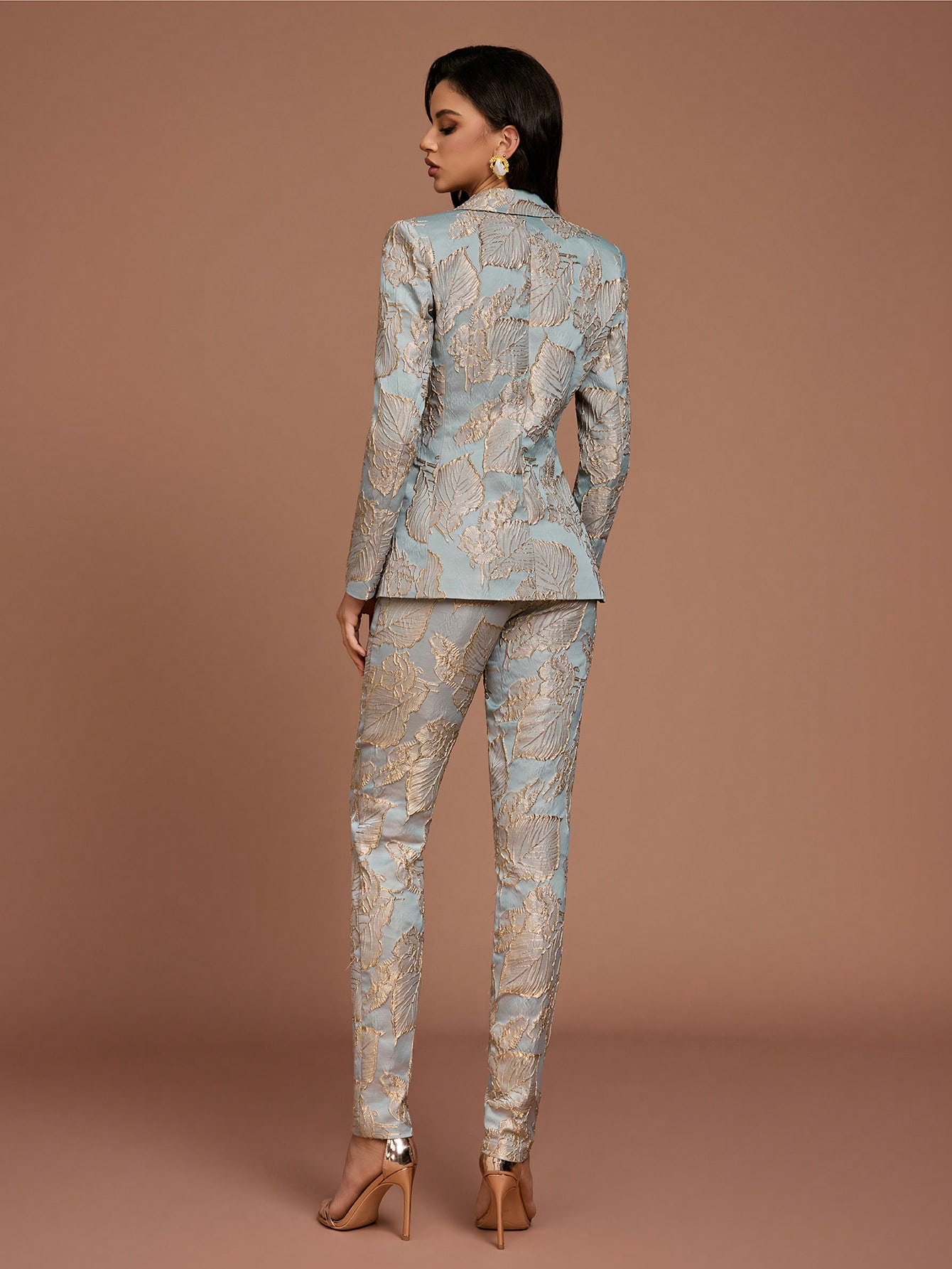 Women's Elegant Lapel Button Front Regular Sleeve Suit Set with Gold Leaf Embroidery Non-Stretch Fabric for Evening Events