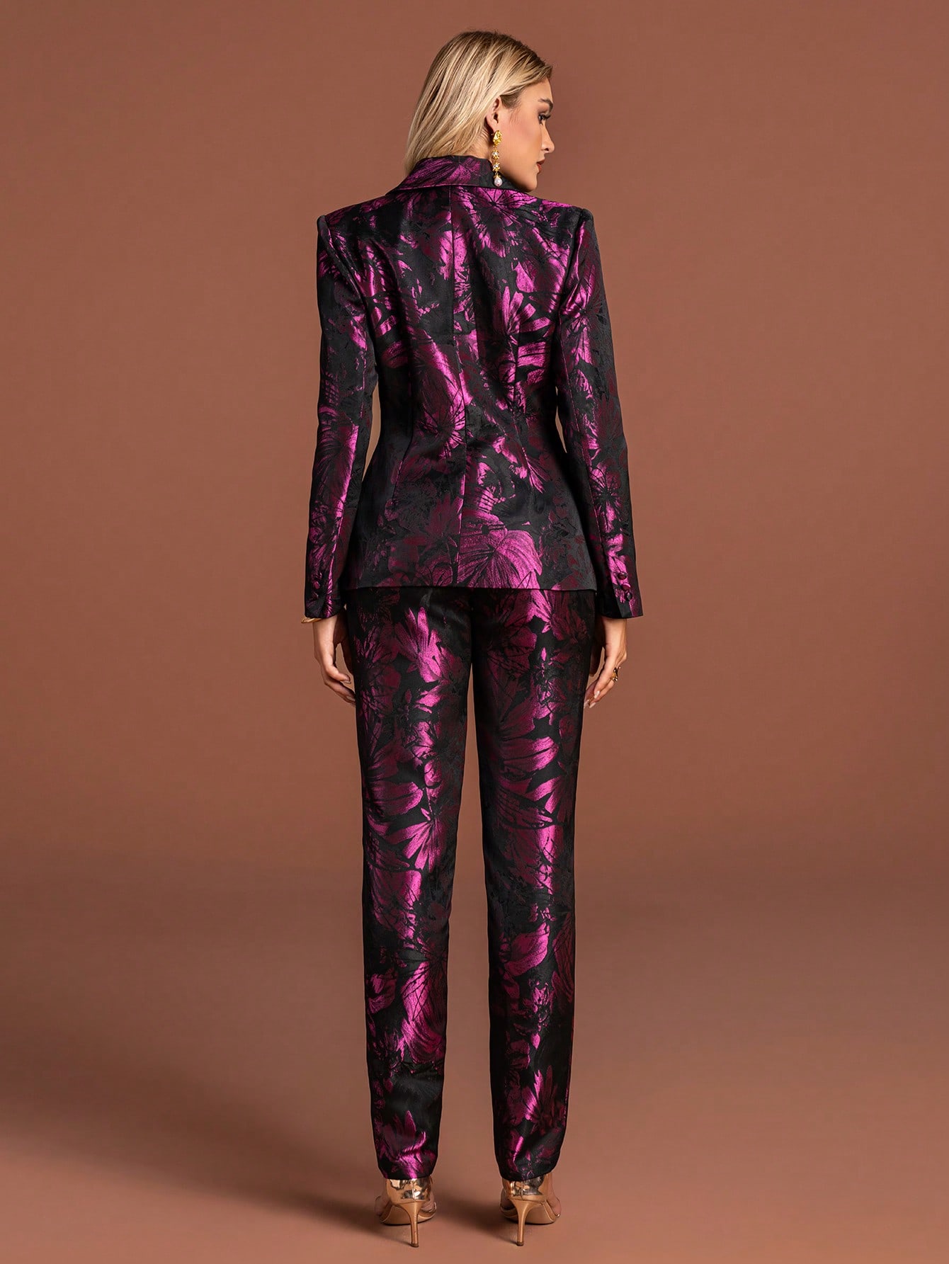 Women Fashion Collar Button Regular Sleeve Floral Print Non-Stretch Blazer Suit Set perfect for a chic and stylish look