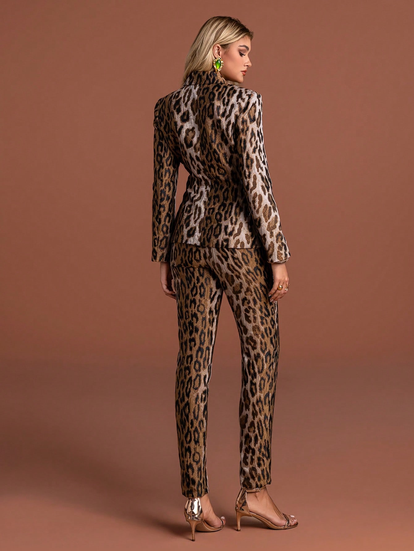 Elegant Leopard Print Women's Suit Set with Collar Buttons Regular Sleeves Non-Stretch Fabric