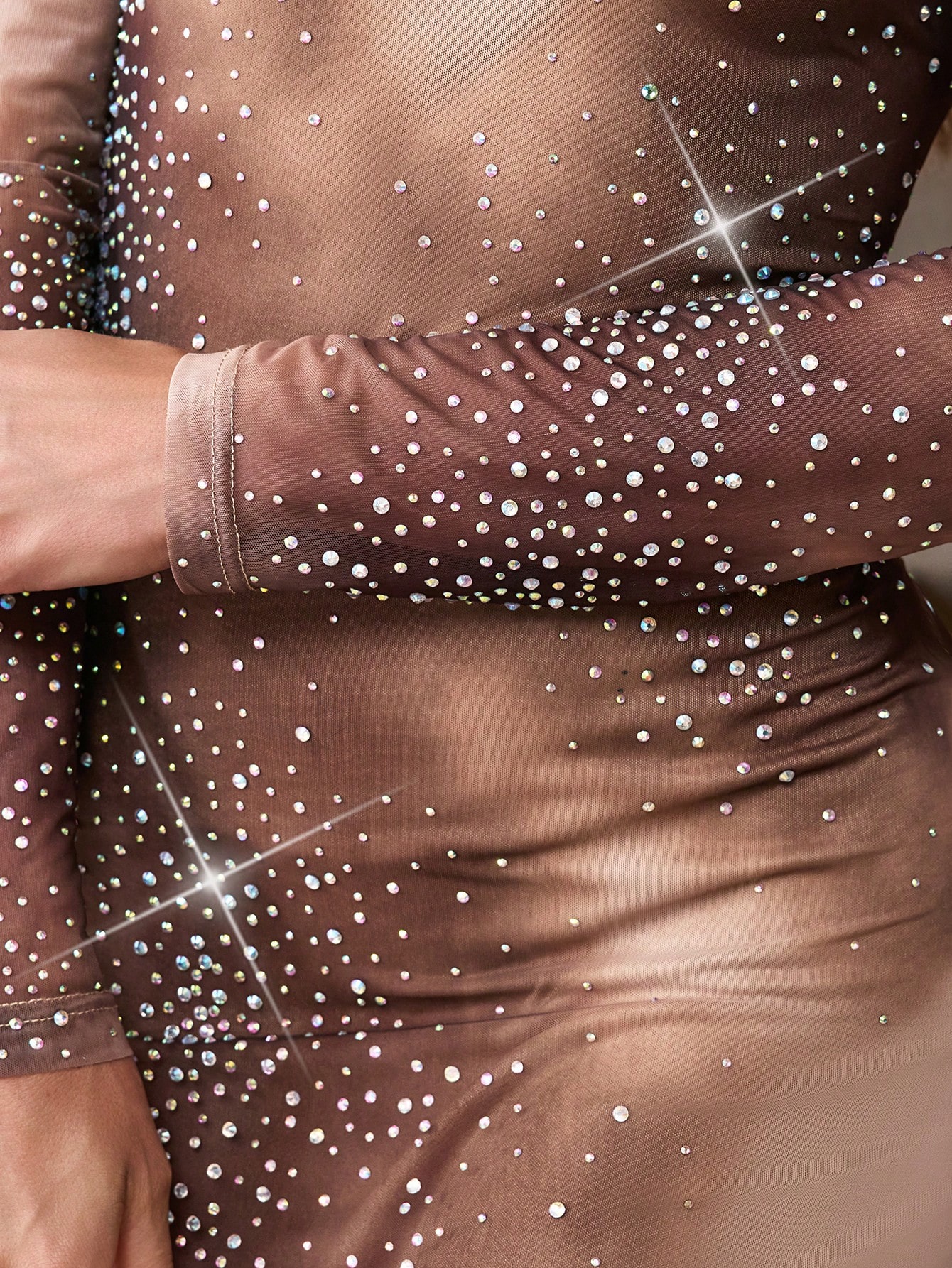 Classic Elegant Hot Drill Rhinestone Women Upscale Evening Gown Bling Diamond Formal Dress For Charity Prom, Galas, Dinners, Cocktail, Award Ceremony Pure Color Square Neck Long Sleeve Maxi Dresses
