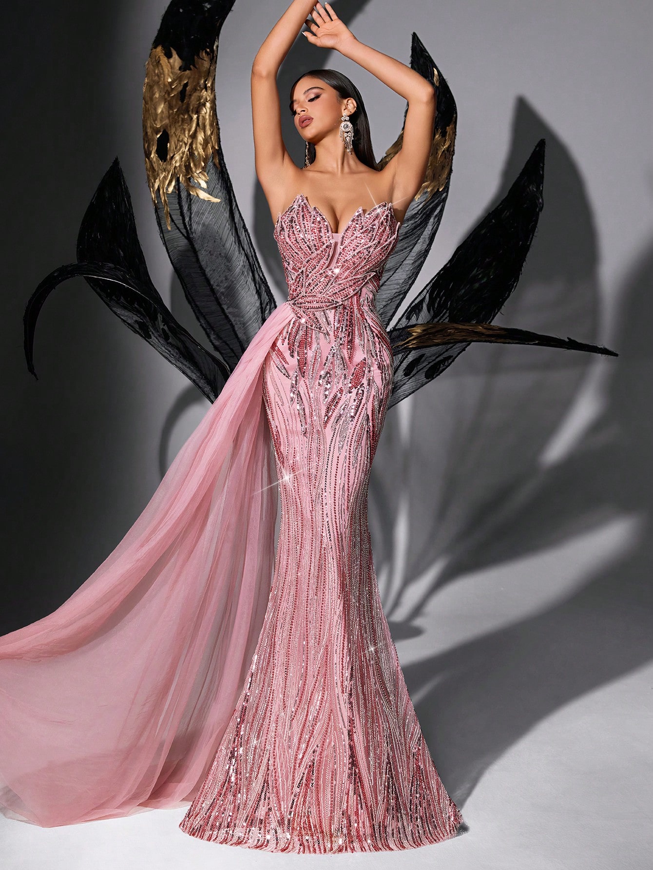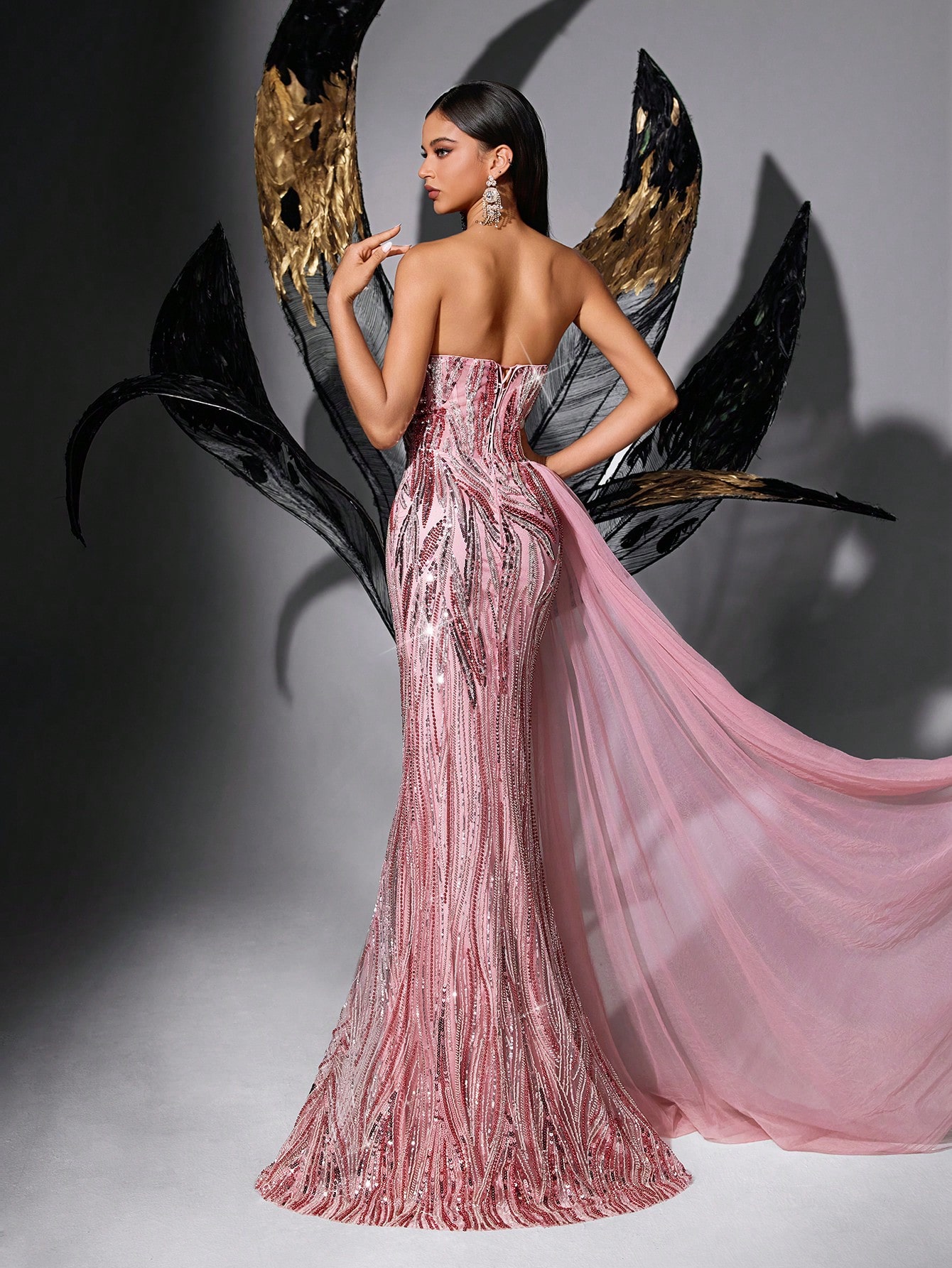 Fairy Style Pink Sequin Strapless Lace Up Gown Dresses For Graduation Party, Gala, Engagement Party